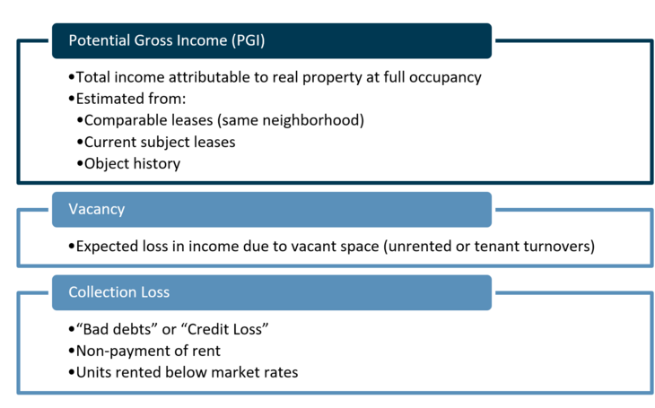 Figure 08: Components of effective gross income (EGI); subtracting operating expenses yields NOI