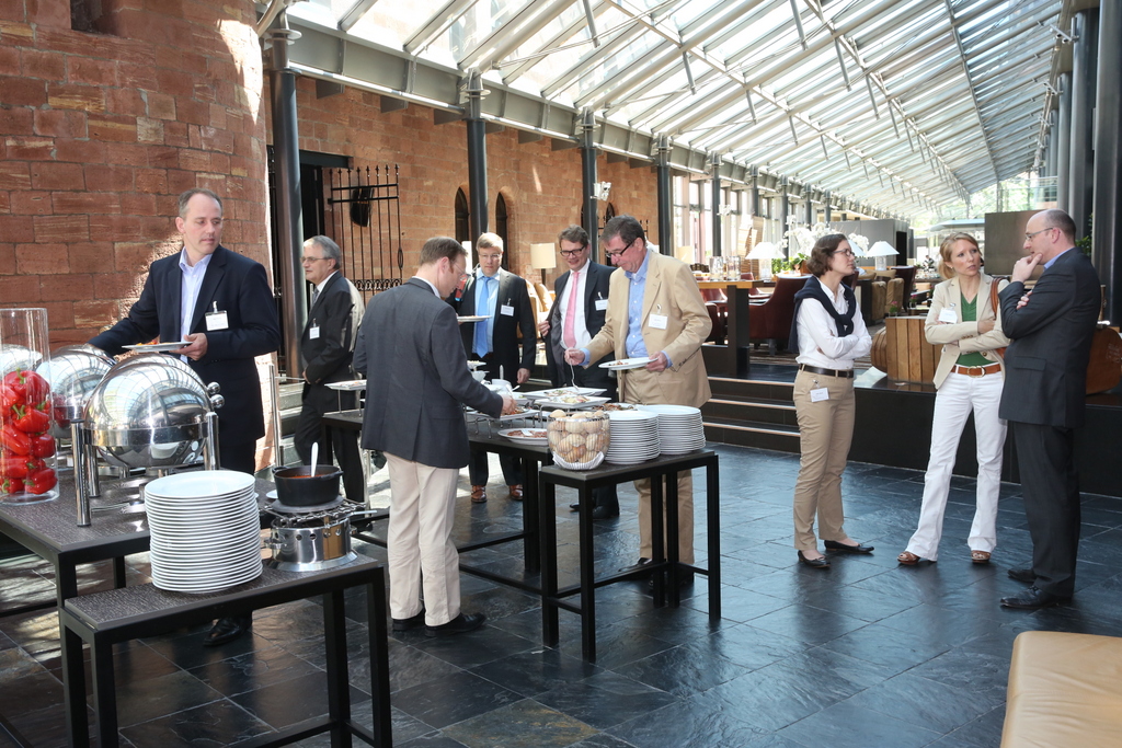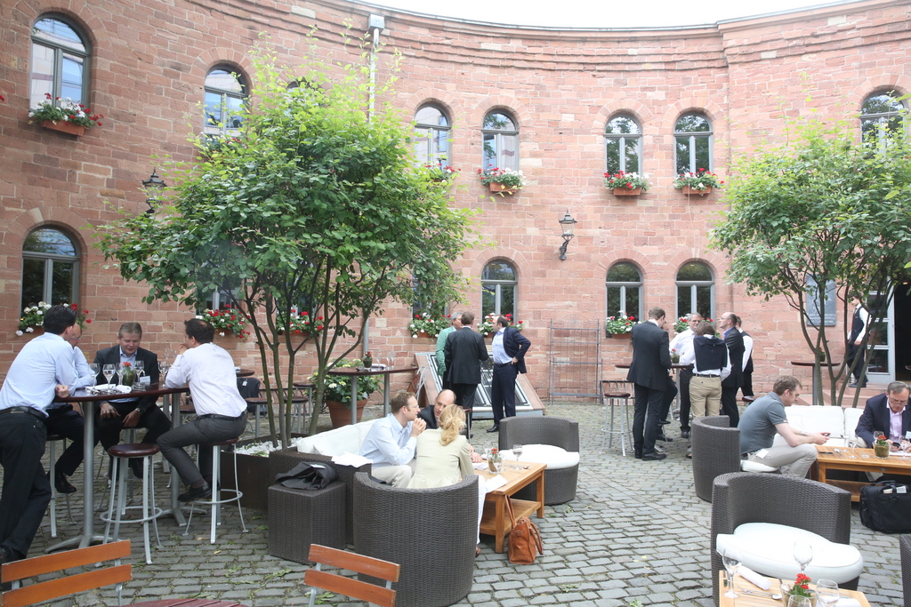 Gedankenaustausch auf der Terrasse des Hyatt Regency Mainz.