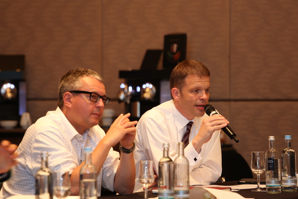 Anschließend diskutierten Christoph Schwager (Chief Risk Officer, EADS), Christian Sewing (bis vor wenigen Wochen Deputy Chief Risk Officer der Deutschen Bank) und Tom Wilson (Chief Risk Officer der Allianz) die Anforderungen an das Risikomanagement bis 2020. Ihr gemeinsames Fazit: Das beste Risikomanagement-System und die besten quantitativen Modelle bleiben unwirksam, wenn das Risikomanagement nicht tagtäglich im Unternehmen gelebt wird. Eine gelebte Risikokultur ist eines der nachhaltigsten Instrumente für Unternehmen aller Branchen.
