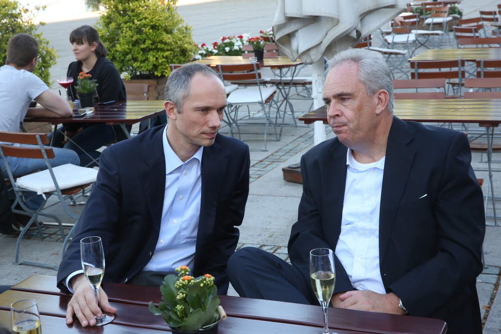 Christian Sewing (links; Deutsche Bank) im Gespräch mit Hubertus Väth (Geschäftsführer Franfurt Main Finance)