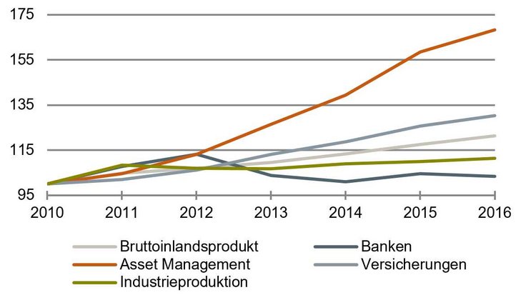 Freilich kann man auch in der Finanzindustrie nicht alles über einen Leisten schlagen. Es gibt einen Bereich, der um Meilen hervorragt. Das ist das Asset Management beziehungsweise die Fondsindustrie. Das Volumen der von dieser Branche betreuten Gelder hat sich nach den Statistiken der Bundesbank seit 2010 um ganze 68 Prozent ausgeweitet. Das entspricht einer jahresdurchschnittlichen Zunahme um rund neun Prozent. Das ist ungewöhnlich. Es widerspricht allen pessimistischen Aussagen über die schlechten Aussichten der Finanzindustrie. Asset Manager können optimistisch sein.