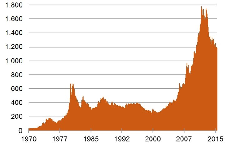 Sechstens: Gold ist entgegen allem, was immer wieder gesagt wird, kein wirklicher Schutz gegen Krisen. Seit seiner Freigabe Anfang der 70er Jahre hat der Preis nur auf zwei große Krisen wirklich reagiert. Das waren die Ölpreisexplosion im Jahre 1980 und der Höhepunkt der Eurokrise 2011/12. Bei so wichtigen Ereignissen wie der Russland- und der Asienkrise Ende der 90er Jahre, dem Attentat am 11. September 2001 in New York oder beim Zusammenbruch der Lehman Bank 2008 hat er kaum gezuckt.