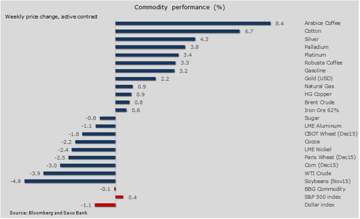 Where there's a loser, there's usually a winner too, and title this week went to precious metals which benefited from short covering. In recent weeks the negative sentiment towards precious metals, especially gold, had led hedge funds to accumulate a record net-short position.