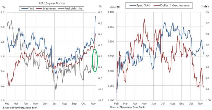 Rising US bond yields and the brewing emerging markets crisis has seen strong demand for dollars post- the election, and this marks yet another gold-negative development.