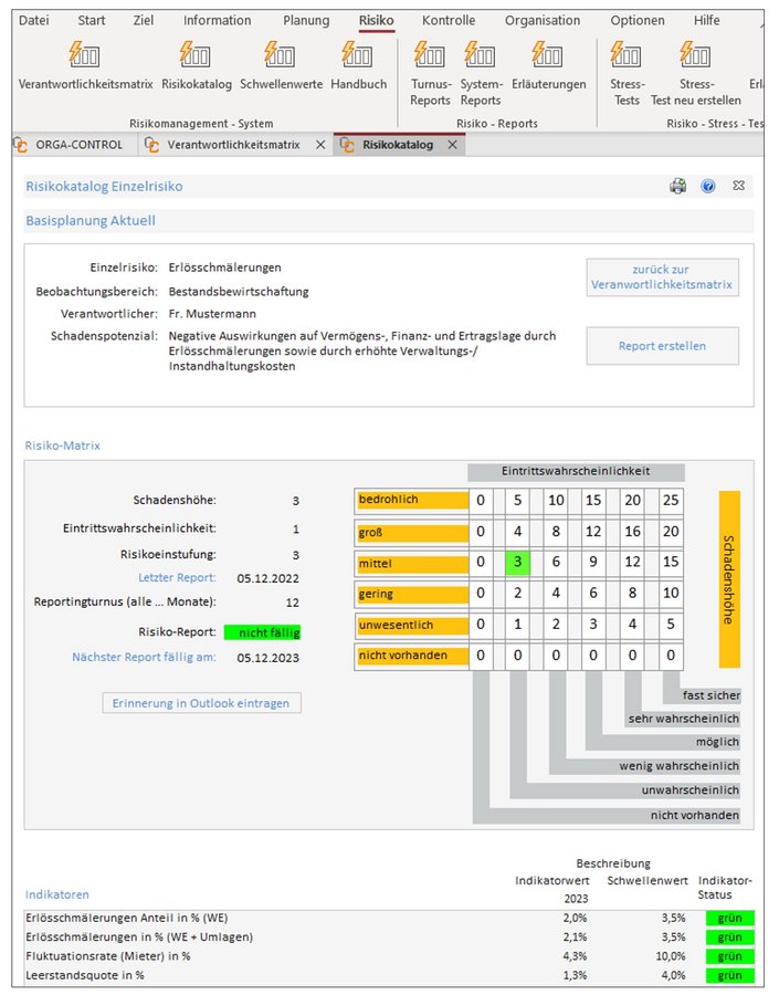 Und auch in der hier Basis-Planung genannten "Normalplanung" finden gemeinhin Risikomanagementüberlegungen Eingang. Eine Basis-Planung wäre z.B. ohne Berücksichtigung von Kostensteigerungen bei der Instandhaltung, von Zinsänderungen bei Ablauf der Zinsbindungsfrist oder von Mieterhöhungen etc. nichtssagend, sprich ohne Wert.