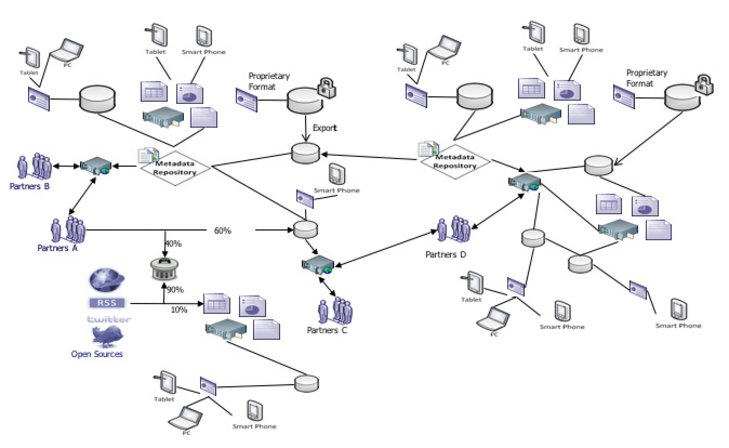 Eine Geheimdienstorganisation kann beispielsweise Geodaten-Informationssysteme, Linkanalyse, Case Management, Biometrik und Such-Tools angeschafft haben, alle zu unterschiedlichen Zeiten, aus verschiedenen Gründen und mit diversen Geldmitteln. Diese Systeme und Tools erfüllen genau oder annähernd, was von ihnen erwartet wird. Was jedoch nie in Betracht gezogen wurde, ist die Integration dieser Systeme auf eine Weise, mit der neue Informationsanwendungen erstellt werden könnten – Anwendungen, die flexibel genug wären, um auf neue Bedrohungen zu reagieren, neue Sensoren oder Beobachtungsverfahren aufzunehmen und mit neu entwickelten analytischen Ermittlungstechniken zu konkurrieren.