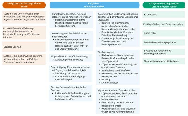 Abb. 01. Die drei Risikokategorien der EU-KI-Verordnung und die entsprechende Kategorisierung von KI-Technologien bzw. deren Anwendungsbereiche