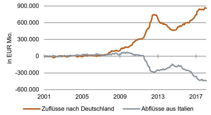 Noch etwas kommt hinzu: Die letztverfügbaren Zahlen beziehen sich auf den Februar. Das war also noch vor den italienischen Wahlen. Dass die europakritischen Parteien bei diesen Wahlen eine Mehrheit erreicht haben, dürfte kaum zu einer Beruhigung der Situation beigetragen haben. Es ist eher zu vermuten, dass die Kapitalflucht aus Italien noch weiter zunimmt. Dies vor allem in dem Fall, dass sich die rechte Lega mit der linken 5-Sterne-Bewegung zu einer gemeinsamen Regierung zusammentun sollten.