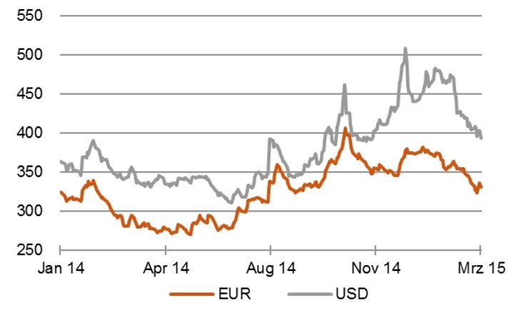 Nicht zuletzt zeigt sich auch die Bundesbank sehr skeptisch in der Beurteilung der Notwendigkeit eines solchen "Quantitative Easing". Aus ihrer Sicht lastet zwar der fallende Ölpreis auf der Inflationsrate. Ein moderater Anstieg der Preissteigerungsrate in den kommenden Jahren wird erwartet, das Risiko einer Deflation dagegen als niedrig eingestuft.