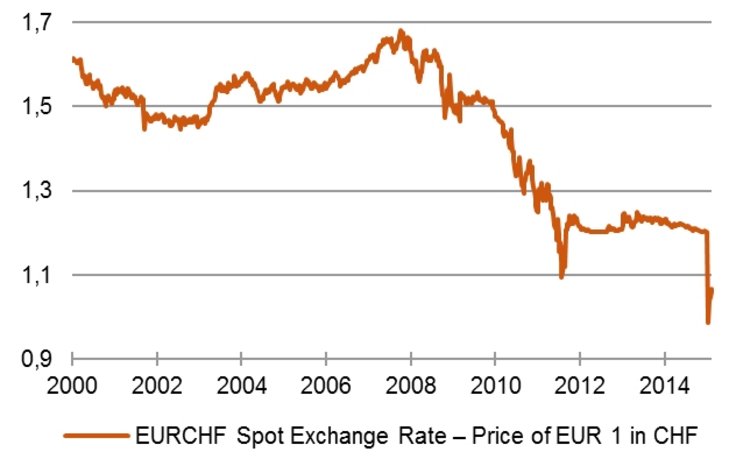 Einen filmreifen Jahresauftakt erlebten die Investoren auch an den Kapitalmärkten. Den Anfang machte am 15. Januar 2015 die schweizerische Nationalbank (SNB), die sich entschied, den Wechselkurs ihrer Landeswährung freizugeben. Nachdem sich der Euro infolge der Krise der Eurozone bereits 2011 anschickte, unter die kritische Marke von einem Schweizer Franken zu fallen, setzten die Schweizer bisher alles daran, ihre beim Export zunehmend ins Hintertreffen geratende heimische Wirtschaft zu schützen. Dazu war es notwendig, den bis dahin ungebremsten Anstieg der Landeswährung aufzuhalten. Nachdem sich die SNB selbst dazu verpflichtete, bei einem Verhältnis von 1,20 Schweizer Franken zum Euro zu intervenieren und die Zentralbanker rein theoretisch unbegrenzt Schweizer Franken direkt aus der Notenpresse verkaufen konnten, hielt der Damm auch für einige Jahre – eben bis er nicht mehr hielt.