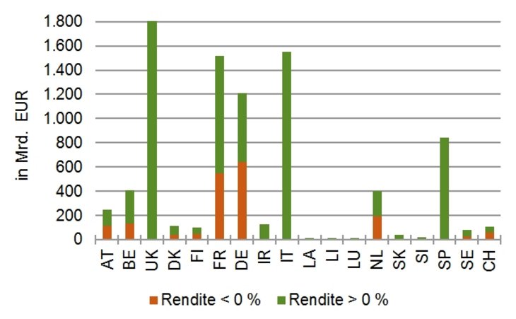 Überblick über Staatsanleihen europäischer Länder mit positiver und negativer Rendite [Quelle: Bank of America/Merrill Lynch]