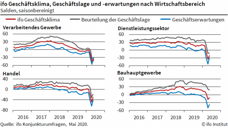 Abb. 02: ifo Geschäftsklima nach Wirtschaftsbereichen, Mai 2020 [Quelle: ifo Institut]
