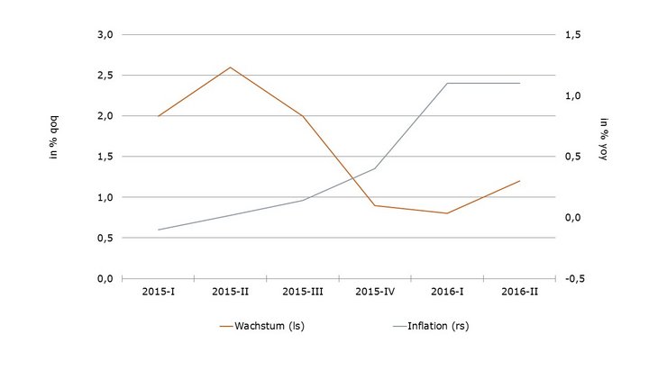 Wo das Problem liegt, ist beim Wachstum. Es schwächelt. In den letzten drei Quartalen lag es unter 1 %. Die Federal Reserve muss zwar nicht hohes Wachstum anstreben. Wenn die Expansion des BIP aber zu gering ist, dann wird sich das auf längere Sicht negativ auf Arbeitsmarkt und Preise auswirken. Eine so gegenläufige Entwicklung von Wachstum und Preisen, wie wir sie in der Vergangenheit hatten, kann es auf die Dauer nicht geben (siehe Grafik). Dann kann die Fed auch nicht die Zinsen anheben.