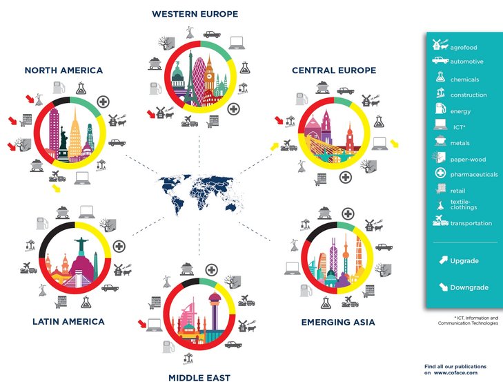 At the end of 2016, global sector trends remained mixed, including in the regions that until now have been relatively spared by the increase in risks. Over the whole year, across 12 sectors evaluated in six regions of the world, nearly half saw their assessments change. There were 23 downgrades for 10 upgrades.