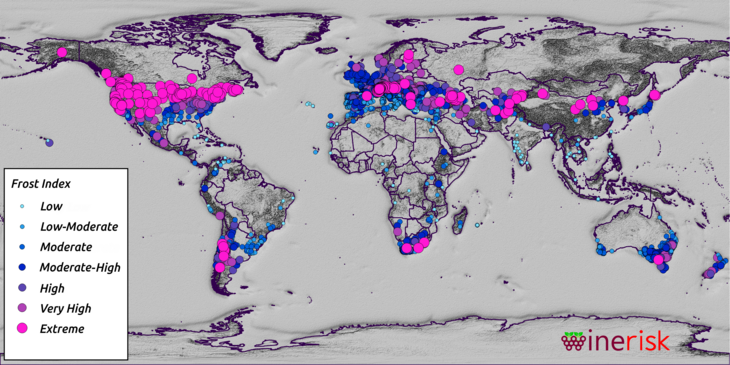 "Kältewellen und Frost haben weitreichende Auswirkungen", erklärt James Daniell. In den vergangenen Tagen trat Frost nahezu europaweit auf, wobei die Slowakei, Bosnien, Serbien, Ungarn, Österreich und Tschechien am stärksten betroffen waren. Hagelstürme gehören Jahr für Jahr zu den größten Bedrohungen für europäische Winzer. So erfuhren traditionelle Weinländer wie Frankreich und Italien in den vergangenen fünf Jahren große Verluste durch Hagel und Frost; besonders stark betroffen waren Burgund und Piemont. Die Hagelverluste von 2012 bis 2016 betrugen in einigen Weinbergen 50 bis 90 Prozent des eigentlichen Werts der Ernte; dazu kommen langfristige Schäden an vielen alten Reben. Doch nicht nur in Europa, sondern auf der ganzen Welt sind die meisten Weinanbaugebiete von mindestens einem Hagelereignis im Jahr betroffen, das zu Schäden für einzelne oder sogar mehrere Jahrgänge führen kann, je nachdem in welcher Phase des Wachstums sich der Wein gerade befindet. Wie James Daniell erklärt, können Hagelnetze bei einem großen Hagelsturm in den meisten Fällen die Ernte retten: "Kosten-Nutzen-Analysen zeigen, dass Premiumweine durch Hagelnetze geschützt werden sollten, während für andere Weine kostengünstigere Methoden oder Versicherungen zu empfehlen sind."