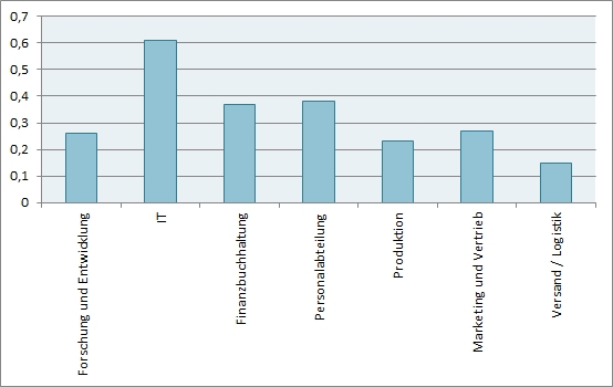 Gefolgt von der Personalabteilung mit 38 Prozent und der Finanzbuchhaltung mit 37 Prozent. Die Antworten zeigen, dass viele Mittelständler Risiken nur in einzelnen Bereichen erfassen und keine integrierte sowie umfassende Risikomanagementbewertung durchführen. In diesem Sinne vermuten die Autoren der Studie eine Risikobewertung in Unternehmen, aber das Fehlen einer gründlichen Analyse. Uwe Rühl: "Ich sehe häufig, dass Teilbereiche im Unternehmen betrachtet werden, doch eine umfassende, strukturierte Methode in den wenigsten Firmen angewendet wird."