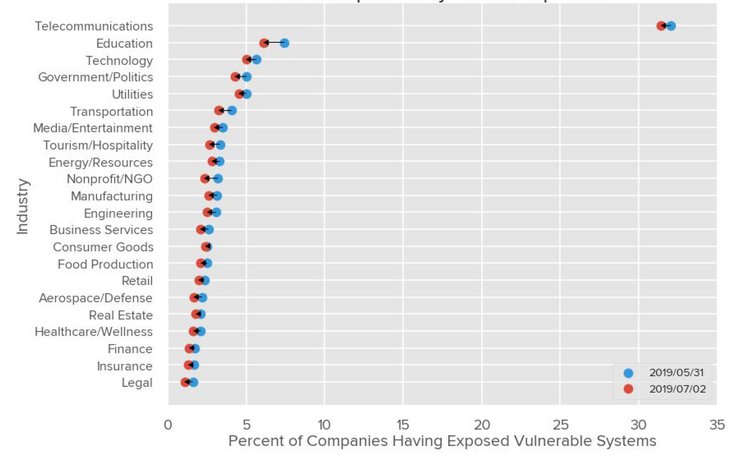 Abb. 02: BlueKeep Industry Sector Exposure [Quelle: BitSight]Abb. 02: BlueKeep Industry Sector Exposure [Quelle: BitSight]