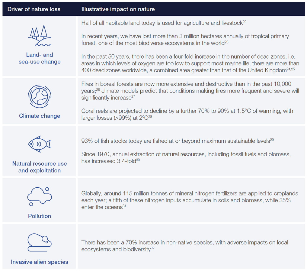 Figure 01: Five direct drivers of nature loss have accelerated since 1970 [Source: World Economic Forum]Figure 01: Five direct drivers of nature loss have accelerated since 1970 [Source: World Economic Forum]