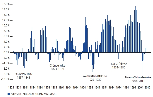 Abbildung 1: Performance S&P 500 seit 1814 [Quelle: Datastream; Allianz Global Investors Capital Markets & Thematic Research, Stand Juli 2013]