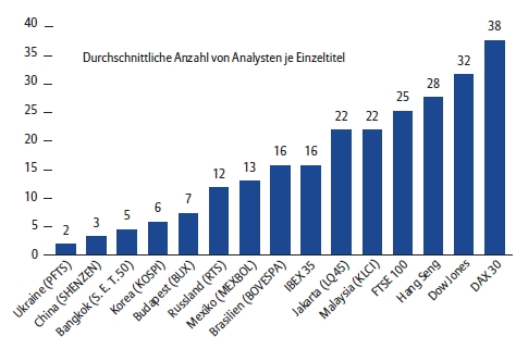 Und: Wie werden Informationen verteilt und somit kursrelevant? Das ist an den Aktienmärkten, beispielsweise gemessen an der Zahl der Analysten, höchst unterschiedlich. Auf einen DAX-Titel kommen rund 38 Analysten, auf einen Wert des Aktienindex Shenzhen B für China hingegen nur drei.![Abbildung 3: Aktives Management – Mehrwert durch Fundamentalanalyse [Quelle: Bloomberg; Allianz Global Investors Capital Markets & Thematic Research] Abbildung 3: Aktives Management – Mehrwert durch Fundamentalanalyse [Quelle: Bloomberg; Allianz Global Investors Capital Markets & Thematic Research]](/fileadmin/template_risknet/images_content/Abb-03-Allianz-20130805.jpg)