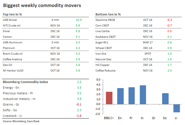 The Bloomberg Commodity index recorded its best week in five with metals both precious and industrial rallying strongly.