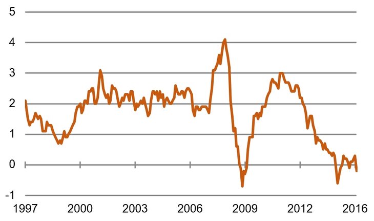 In der vorigen Woche ist bei den Preisen etwas ganz seltsames passiert. Die Inflationsrate im Euroraum ging kräftig zurück. Sie wurde zum ersten Mal seit September wieder negativ. Das war für sich genommen für viele schon überraschend. Hinzu kam aber noch, dass die Entwicklung nicht wie bisher primär auf sinkende Preise bei Benzin und Heizöl zurückzuführen war. Verringert haben sich vielmehr auch die Preissteigerungen bei Industriegütern und Dienstleistungen. Die sogenannte "Kernrate der Inflation" (ohne die Preise von Energie und Nahrungsmitteln) ging von 1,0 Prozent auf 0,8 Prozent zurück. Das hatten wenige auf der Rechnung. Was ist da los? Müssen wir uns auf eine neue Deflation einstellen? Muss die EZB darauf reagieren?