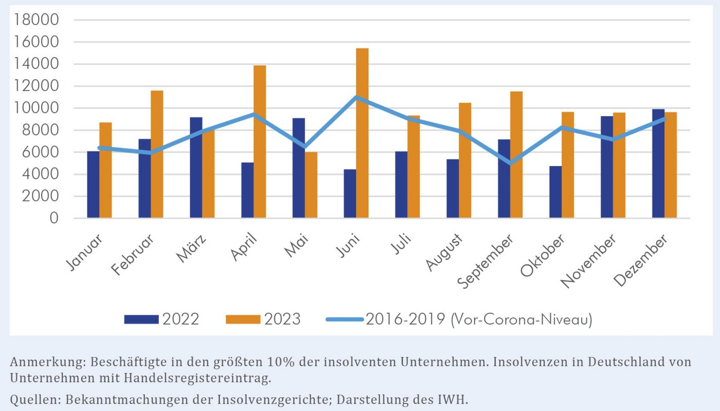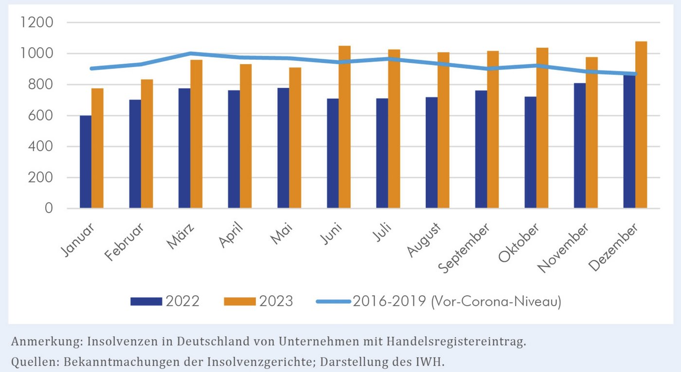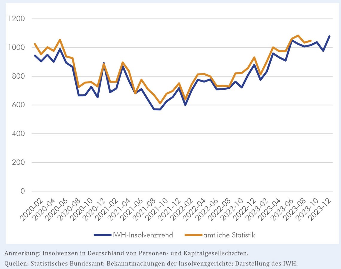 Auch eine aktuelle Analyse des Leibniz-Instituts für Wirtschaftsforschung Halle (IWH) zeigt, dass die Zahl der Insolvenzen von Personen- und Kapitalgesellschaften im Dezember stark angestiegen ist. Die Wissenschaftler aus Halle erfassten den höchsten Wert für einen Dezember seit Beginn der Datenerfassung im IWH-Insolvenztrend im Jahr 2016. Für die kommenden Monate rechnet das IWH mit weiter steigenden Insolvenzzahlen.