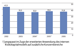 Zum Ende des Geschäftsjahres 2006 betrug das gruppenweite interne Risikokapital nach Gruppendiversifikationseffekten und vor Abzug der Minderheitenanteile 35,8 Milliarden Euro.