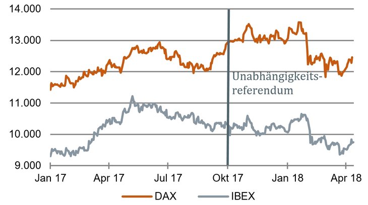 Eigentlich könnte man den Katalonien-Konflikt als eine spanische Provinzposse abtun. Da lehnt sich eine Region gegen die Zentralregierung auf. Die Administration in Madrid lässt Polizei aufmarschieren, nimmt die Separatistenführer fest und bedroht sie mit langen Haftstrafen. Der frühere Präsident Carles Puigdemont flieht ins Ausland und wird dort vom Geheimdienst verfolgt. Jeder hat das gelesen. Die Finanzmärkte haben aber darauf kaum reagiert (siehe Grafik). Es gab offenbar Wichtigeres.