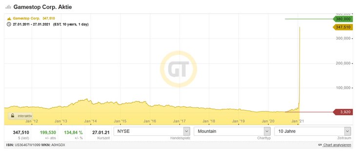 Erstmals wurde schon vor knapp 2 Jahren bei WSB die Aktie von GME diskutiert. Damals ging es um eine Anmerkung eines Nutzers, wonach die Barbestände unterschätzt und die Aktie des Unternehmens unterbewertet sei. Danach passierte allerdings wenig. Mitte 2019 kam dann wieder mehr Fahrt rein, als der Hedgefonds-Manager Michael Burry bei GME einstieg und forderte, dass der Konzern mit seinem Cash eigene Aktien zurückkaufen solle. Daraufhin verdoppelte sich der Kurs und die ersten WSB-Mitglieder präsentierten stolz ihre "Tendies". Mit dem Ziel eines Shortsqueezes vor Augen entwickelt sich immer mehr ein Kampf der Wallstreet-Wetter gegen das Establishment. – Viele Mitglieder rufen nun schon aberwitzige Kursziele von mehreren Tauschend USD aus, da die Shortseller ja ihre Positionen "um jeden Preis" schließen müssen. Gepaart mit lustigen Memes werden fast minütlich neue Posts getätigt, in denen dem Motto "Never sell, never surrender" gepaart mit den Emojis ? ? folgend die Oldschool-Investmentsprofis mit Hohn und Spott übersäht werden. Eine Frage lautete beispielsweise, ob man denn heute schon einen Milliardär ausgeraubt" hätte.