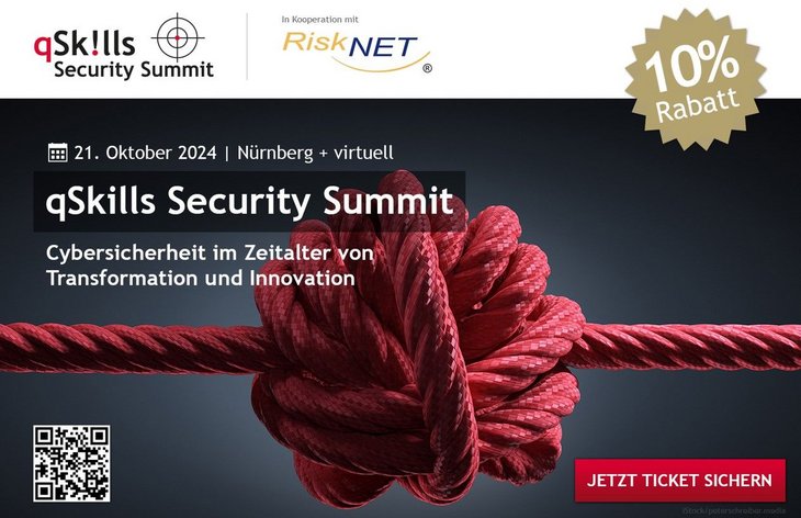 Nutzen Sie am nächsten Tag gleich die Gelegenheit zu einem Besuch auf der it-sa. Erleben Sie qSkills in Halle 7 am Stand 246 und auf dem congress@it-sa im NCC Ost, Raum Istanbul. Ihre kostenfreie Eintrittskarte bestellen Sie mit dem Gutschein-Code 525605itsa24 direkt auf it-sa.de.