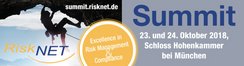 Am 23. und 24. Oktober 2018 findet der diesjährige RiskNET Summit im Schloss Hohenkammer bei München statt. Die zweitägige Fachkonferenz zu den Themen Risikomanagement, Corporate Governance und Compliance ist richtungsweisend in einer Welt voller Turbulenzen, Terror, geopolitischer Konflikte und Cyberrisiken. Das Ziel der Konferenz: Praxisnahe Risikomanagementstrategien und -methoden diskutieren und damit von gelebten Werten zu einem Mehrwert gelangen.