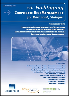 Am 30. März 2006 veranstaltet die Schleupen AG in Zusammenarbeit mit RiskNET und der Risk Management Association e. V. in Stuttgart die "10. Fachtagung Corporate RiskManagement". Themenschwerpunkte sind: