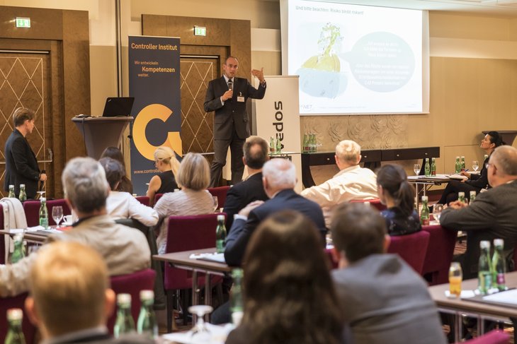 Im Anschluss an die Begrüßung durch Rita Niedermayr (Geschäftsführerin | Österreichisches Controller-Institut), referierte Frank Romeike (Geschäftsführender Gesellschafter und Gründer | RiskNet GmbH) über die Zukunft des Risikomanagements und das Risikomanagement der Zukunft. Er sagte, dass der Fluch des Risikomanagements häufig darin liege, dass es keine Verknüpfung zwischen Strategie und Risiko gibt. Oftmals haben Unternehmen nur ein report-getriebenes Risikomanagement. "Risikomanagement ist oft ein Potemkinsches Dorf", sagte Romeike und meint damit, dass Risikomanagement oberflächlich ausgearbeitet wirkt, aber in der Praxis nicht mehr ist, als eine reine rückspiegelorientierte "Risikobuchhaltung". Dabei besteht insbesondere für disruptive Innovationen und strategische Risiken ein unzureichendes Bewusstsein.