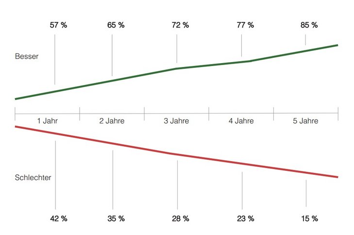 Abbildung 03: Anteil der Portfolien mit Verbesserung/Verschlechterung der Portfoliostruktur hinsichtlich Ausfallrisiko abhängig von der Laufzeit