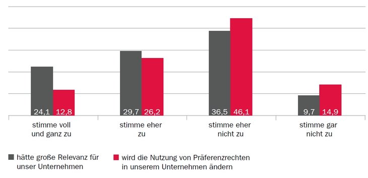 Und obwohl viele Unternehmen bereits die Potenziale des Präferenzrechts – zum Beispiel im Warenverkehr mit der Schweiz – nutzen, glauben immerhin 39 Prozent der Befragten, dass sich die Nutzung von Präferenzrechten durch TTIP weiter ändern wird. Es ist also davon auszugehen, dass auch etablierte Prozesse rund um das Thema Präferenzrecht überprüft und angepasst werden müssen.