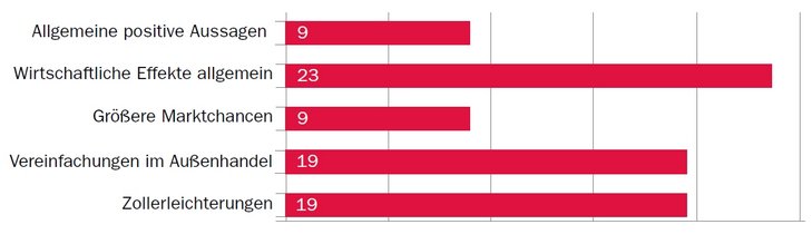 "Notwendig", "wichtig" oder "zwingend erforderlich" – die Befürworter des transatlantischen Freihandelsabkommens formulieren ebenfalls deutlich. Als Vorteile nennen sie vor allem die Beseitigung von Handelshemmnissen, neue Marktchancen und positive Effekte auf die wirtschaftliche Entwicklung. Konkret erwähnt werden auch verschiedene Vereinfachungen der Abläufe im Außenhandel sowie klare Einsparungen beim Zoll.