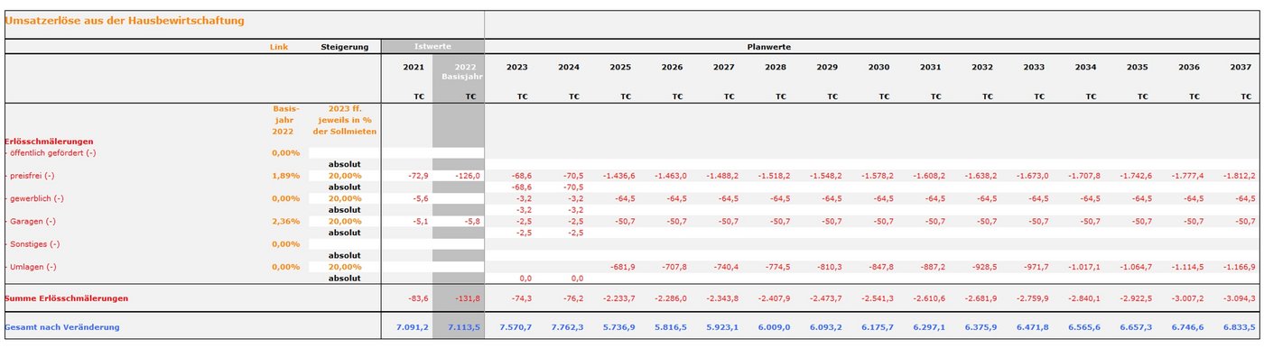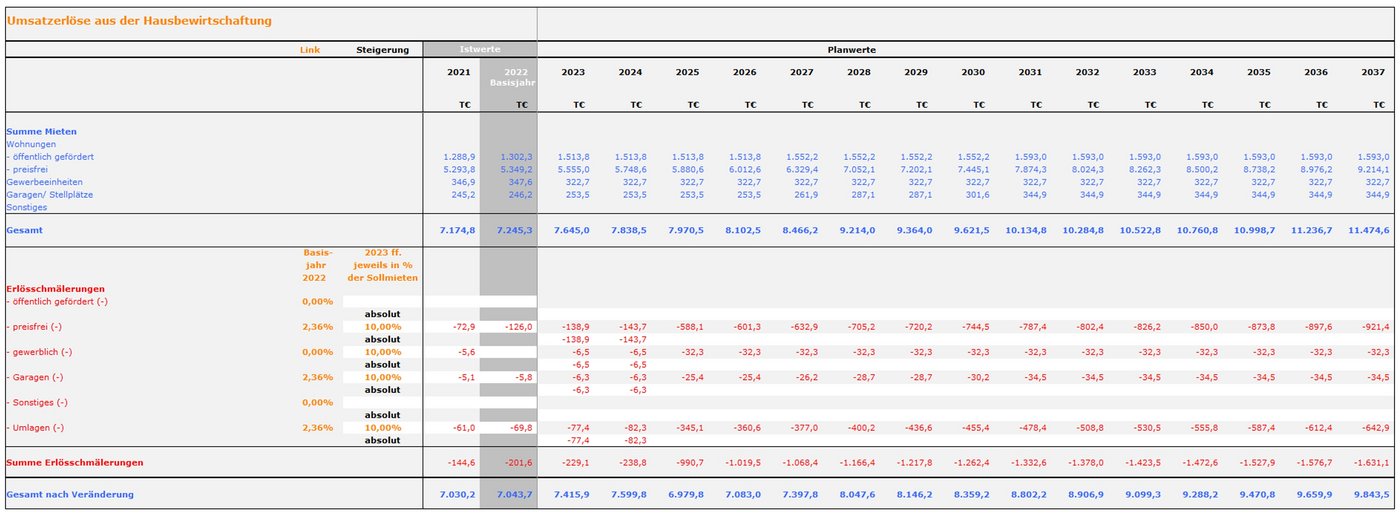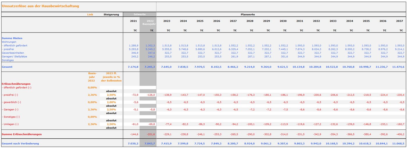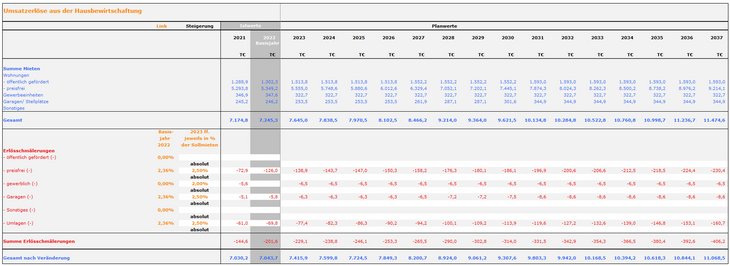 Abb. 05: Umsatzerlöse aus der Hausbewirtschaftung in der Basis-Planung
