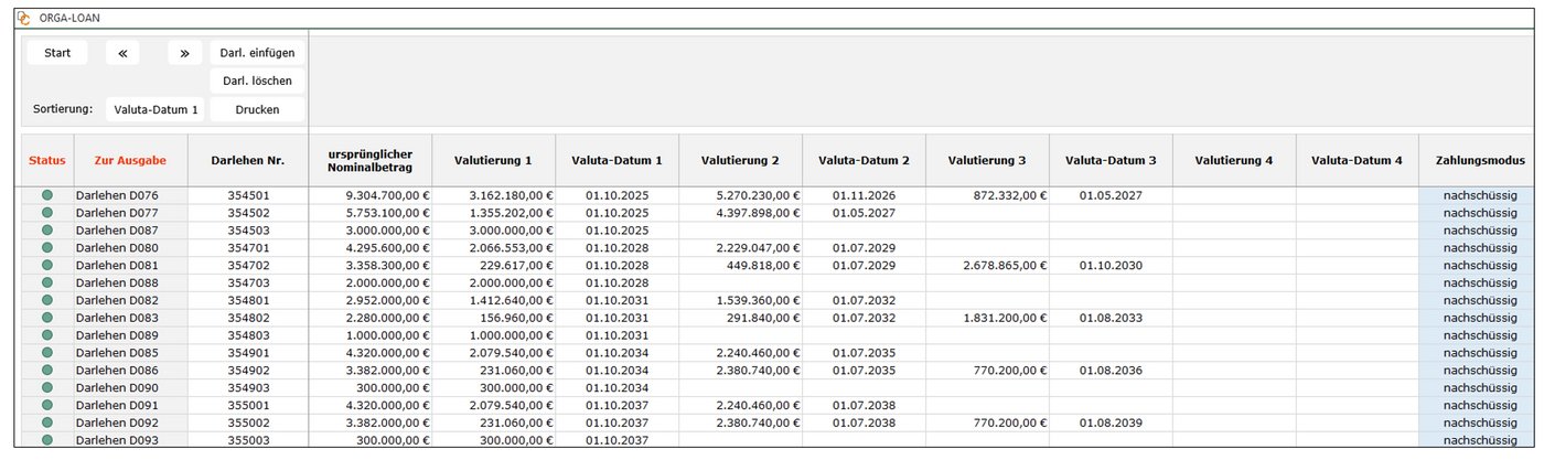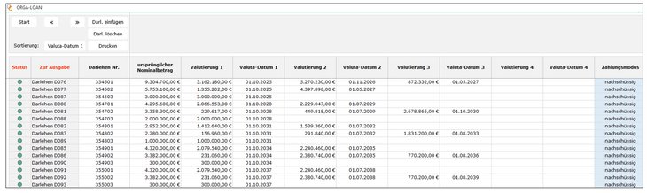 - Darlehen-Neuvalutierungen und der damit verbundenen Annuitäten