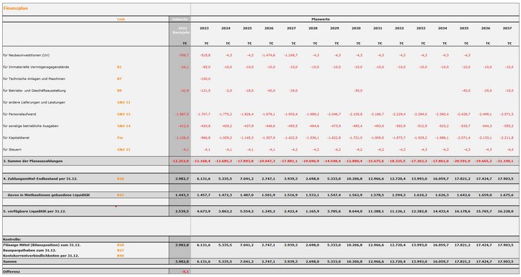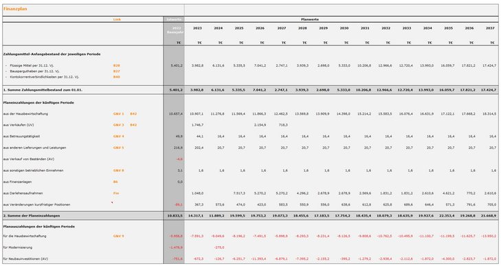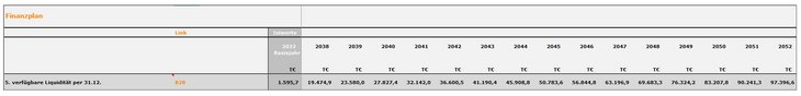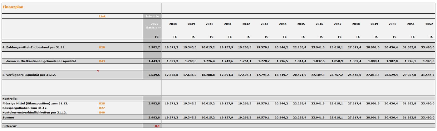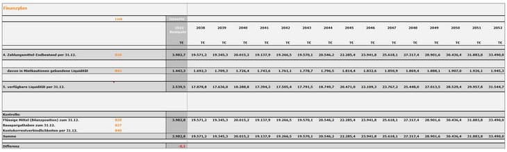 Ab 2038 bis zum Ende des Planungshorizonts ergibt sich aufgrund der noch nicht geplanten größeren Modernisierungs- / Großinstandhaltungsmaßnahmen ein stetig steigender Überschuss.