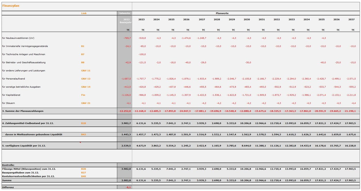 Die Aggregation aller Investitionen und Teilpläne führt auf Unternehmensebene dann zu folgenden Finanzplanergebnissen: