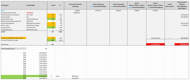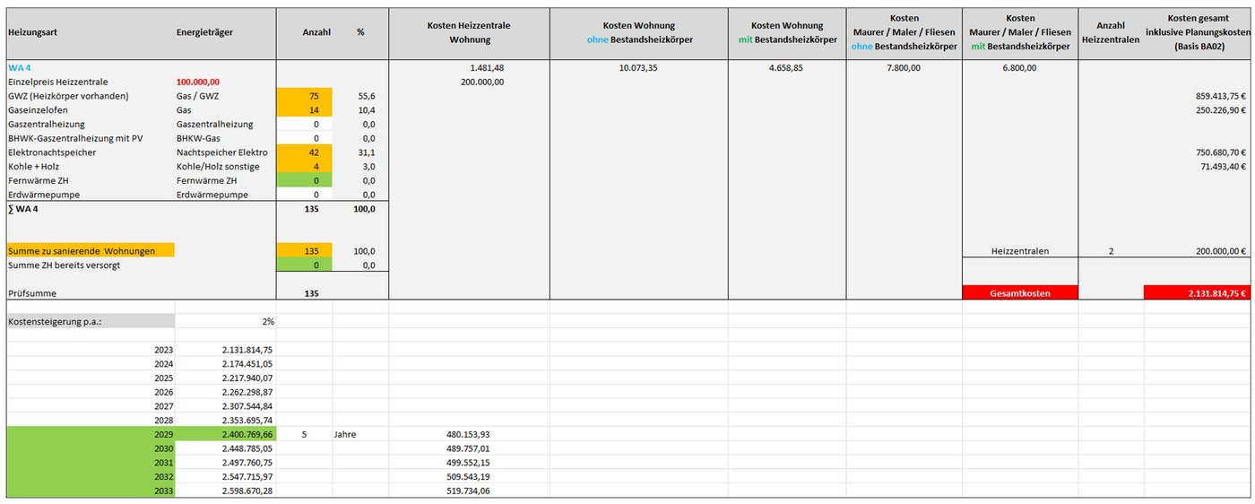 Das Unternehmen plant die Anschlusskosten ohne zusätzlichen Fremdmitteleinsatz. In der Basis-Planung wird zwar ab 2032 auf größere Modernisierungs- / Großinstandhaltungsmaßnahmen verzichtet, in den Jahren 2029 bis 2031 ist jedoch aus bautechnischen Gesichtspunkten (WA 4) eine Komplettsanierung sinnvoll, so dass allgemeine Sanierungskosten und nachfolgend genannte Kosten für den Anschluss an die Fernheizung zusammenfallen.
