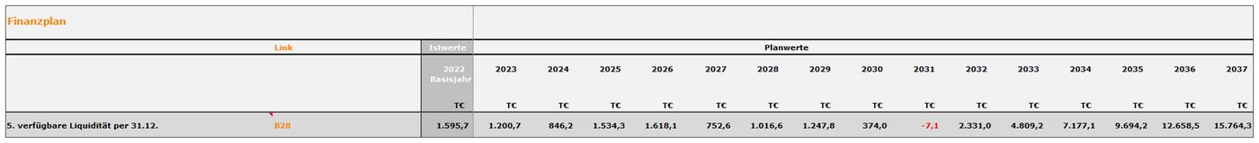 Diese zusätzlichen Kosten können nicht vollständig aus dem operativen Geschäft bestritten werden. In 2030 wird noch ein Überschuss von 374,0 T€ erzielt, in 2031 jedoch schon ein Fehlbetrag i.H.v. 7,1 T€. Insgesamt ist 2030 / 2031 ein zusätzlicher Finanzierungsbedarf – mit Puffer - i.H.v. ca. 500,0 T€ gegeben.