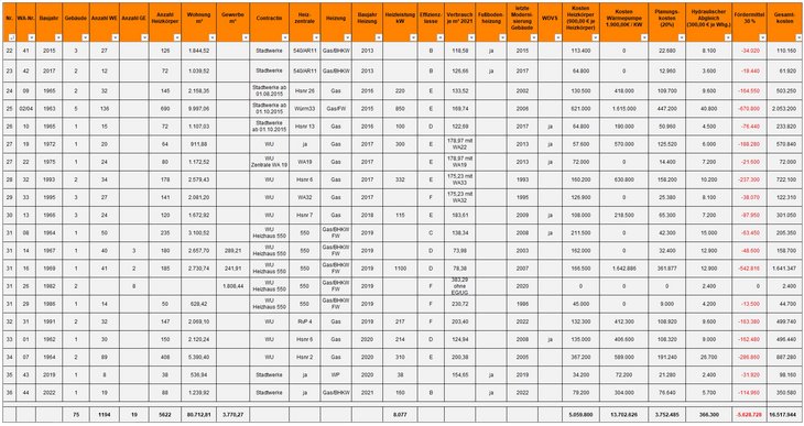 Die an Gaswärmezentren (GWZ) angeschlossenen Wohnungen verfügen bereits über Heizkörper. Die Rechnung für die betroffenen 75 Wohnungen ist in Abb. 10 zusammengefasst.