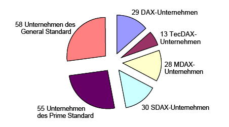 Der Deutsche Corporate Governance Kodex (DCGK) enthält neben der Darstellung wesentlicher gesetzlicher Vorschriften zur Unternehmensführung in seiner heute geltenden Fassung vom 12. Juni 2006 insgesamt 81 Empfehlungen sowie 20 Anregungen zur Leitung und Überwachung börsennotierter Gesellschaften. Die Befolgung der Empfehlungen und Anregungen steht den Unternehmen frei. Börsennotierte deutsche Gesellschaften sind allerdings nach § 161 AktG gesetzlich verpflichtet, in einer jährlichen Entsprechenserklärung darzulegen, welche Empfehlungen sie nicht anwenden. Das Berlin Center of Corporate Governance (BCCG) führt seit Verabschiedung des Kodex im Jahr 2002 im Auftrag der Regierungskommission regelmäßig eine empirische Studie durch, um die Akzeptanz der Regelungen des DCGK in der Wirtschaftspraxis systematisch zu erheben. Zu diesem Zweck werden die an der Frankfurter Wertpapierbörse notierten Gesellschaften danach befragt, inwieweit sie den einzelnen Kodexregelungen bereits entsprechen, dies noch innerhalb des laufenden Jahres beabsichtigen oder aber eine Befolgung der Bestimmungen (auch in Zukunft) ablehnen. Die Befunde der Erhebungen werden im jährlich erscheinenden Kodex Report veröffentlicht. Der aktuelle Kodex Report (Kodex Report 2007) beruht auf der Auswertung von insgesamt 213 Fragebögen, die sich auf sämtliche Börsensegmente verteilen (siehe Abbildung). Die Rücklaufquote beträgt über alle (601) Unternehmen gerechnet 35,4 Prozent und reicht von 22,7 Prozent im General Standard bis zu 96,7 Prozent im DAX2. Der auswertbare Rücklauf ist damit gegenüber den Vorjahren noch gestiegen.