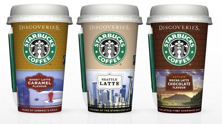 Die gekühlten Kaffeegetränke Starbucks Discoveries und Doubleshot Espresso & Milk gibt es nicht nur in den Starbucks-Cafès, sondern auch in den Kühlregalen des Lebensmitteleinzelhandels, an Tankstellen und in Supermärkten "um die Ecke" [Bildquelle: Starbucks]