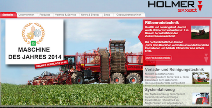 Innovationen sollten auch innovativ kommuniziert werden. Deshalb nutzt der Erntemaschinen-Hersteller Holmer aktiv die sozialen Netzwerke und seine Internetpräsenzen [Bildquelle: Holmer]