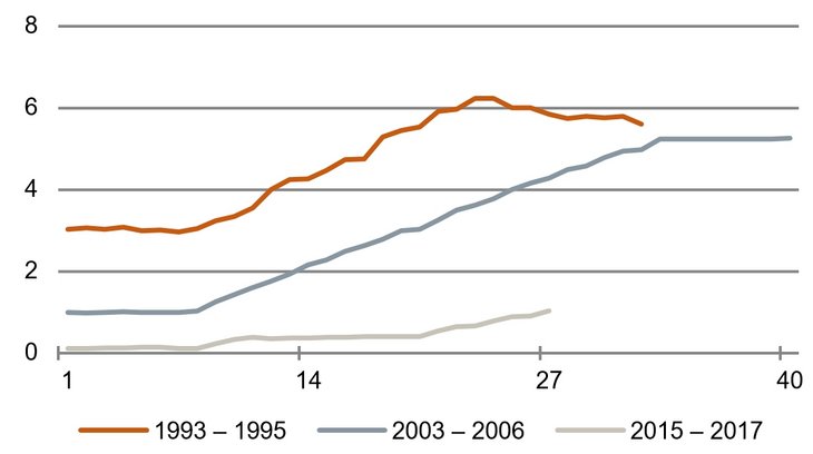 ![unterschiedlichen Regeln (siehe Grafik). Zinszyklen im Vergleich [USA, Federal Funds Rate in %, jeweils Monate nach dem Zinstief, Quelle: Fred] unterschiedlichen Regeln (siehe Grafik). Zinszyklen im Vergleich [USA, Federal Funds Rate in %, jeweils Monate nach dem Zinstief, Quelle: Fred]](/fileadmin/_processed_/d/8/csm_Abb-01-Huefner-2017-07-26_b381f8b6e3.jpg)