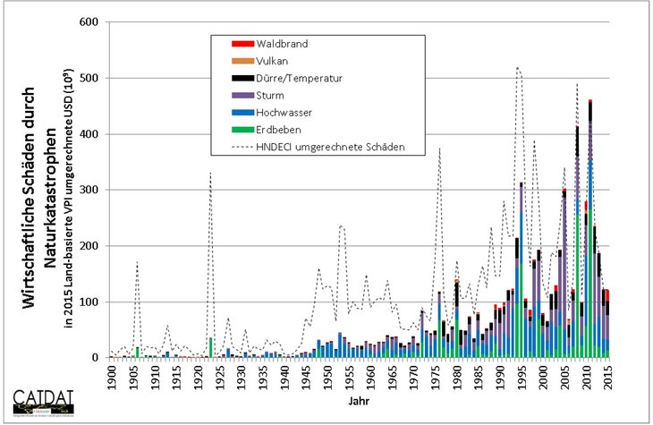 Abhängig davon, ob man die Schäden über den Verbraucherpreisindex oder den Baupreisindex auf das Niveau von 2015 anpasst, ergibt sich seit Beginn des 20. Jahrhunderts eine weltweite Naturkatastrophen-Schadensbilanz zwischen 6,5 und 14 Billionen US-Dollar. Die von Daniell ermittelten sieben Billionen basieren auf der Anpassung über einen Preisindex des Bruttoinlandsprodukts (BIP-Deflator). "Oft ist es unmöglich, eine genauere Zahl für ein Ereignis zu erhalten, da Schäden sehr schwierig zu schätzen sind, auch Todeszahlen werden häufig zunächst häufig überschätzt, zum Beispiel beim Erdbeben in Haiti 2010, oder unterschätzt, wie beim Beben in Usbekistan 1966", sagt er und nennt deshalb in seiner Forschung Ober- und Untergrenzen.