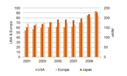 Wieso kann eigentlich ein Land nicht mit dem dreifachen seines Bruttosozialprodukts verschuldet sein? Japan weist seit zwei Jahrzehnten die höchste Staatsschuldenquote aller Industrienationen auf und kann diese angesichts seiner fast schon institutionalisierten Niedrigzinspolitik auch refinanzieren. Hierfür gibt es vor allem eine zentrale Erklärung: Japan refinanziert sich zu extrem hohem Maße im eigenen Land. Und die japanische Mentalität bedingt ein höheres Maß an Gutgläubigkeit als das in anderen Ländern der Welt der Fall ist. Nach Fukushima hat der japanische Yen überraschend stark gegenüber dem USD zugelegt, weil die Japaner Teile ihrer Vermögen repatriiert haben. Aus Sicht der Bürger und vor dem Hintergrund, dass Japan eine Exportnation ist, die keinen Kapitalabfluss, sondern einen Kapitalzufluss verzeichnet, kommt die erhöhte Staatsverschuldung also direkt oder indirekt wieder den Bürgern zu Gute. Japan kann in dieser Hinsicht vielleicht als Vorbild verstanden werden. Allerdings kennen wir die Kosten dieser Art der Krisenbewältigung: Der japanische Weg führt zu extrem niedrigem Wirtschaftswachstum über Jahrzehnte und zur Etablierung deflationärer Tendenzen. Die ersten Schritte in diese Richtung wurden nun auch von den europäischen und amerikanischen Regierungen eingeschlagen.